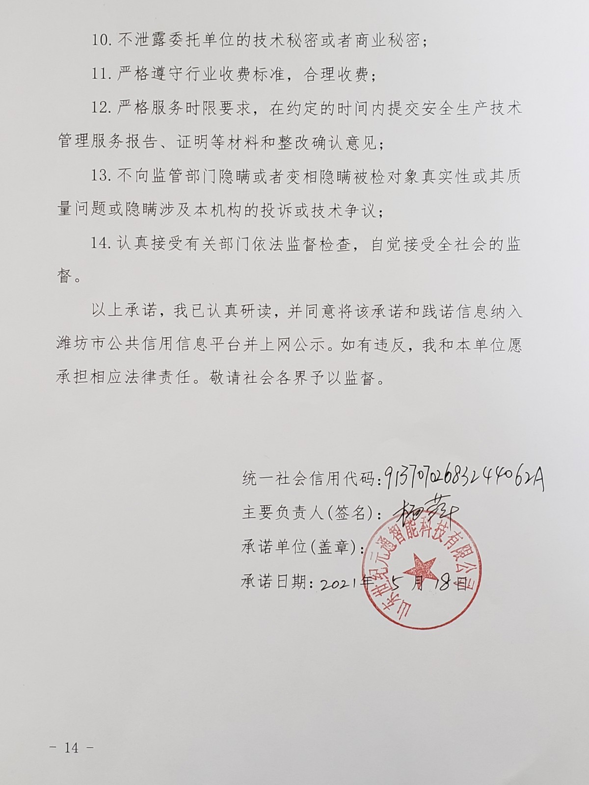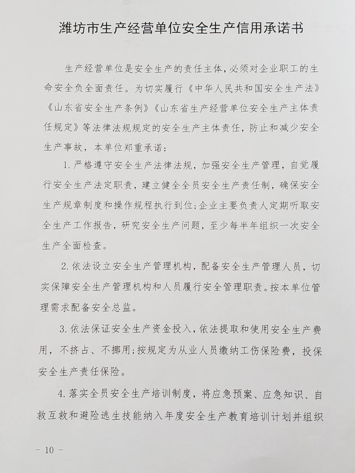 公司關于《濰坊市生產經營單位安全生產信用承諾制度》的公示