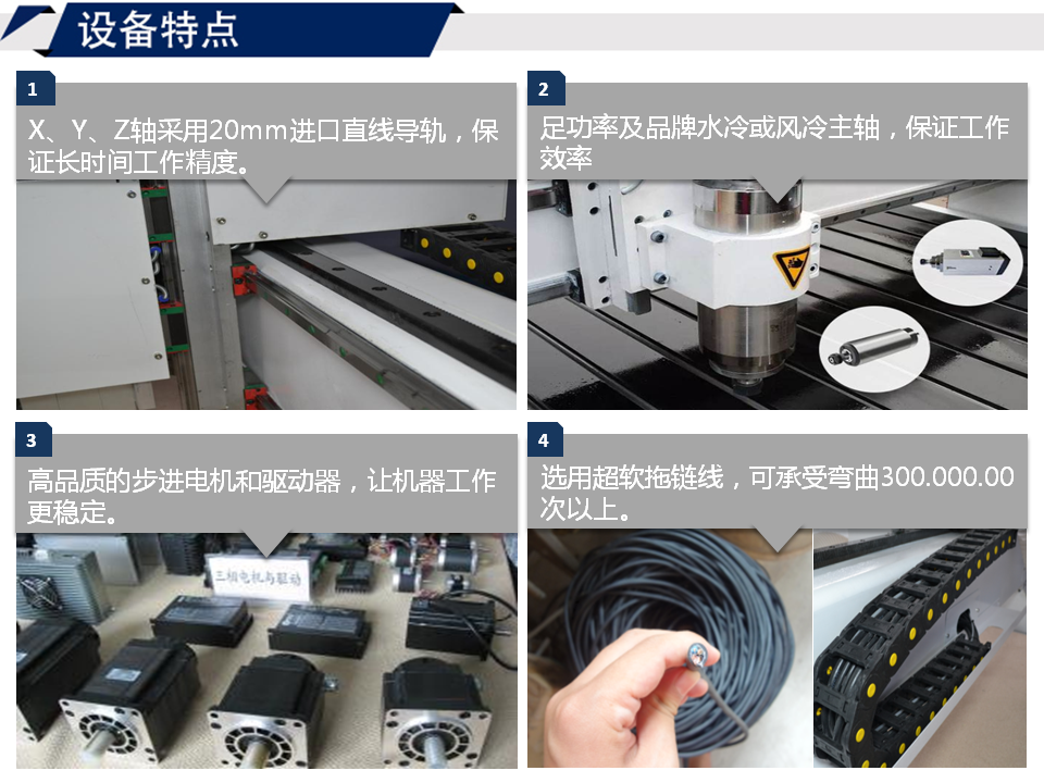 4.24000rpm水冷主軸,穩(wěn)定工作的同時(shí)能讓木工加工工作更長久;